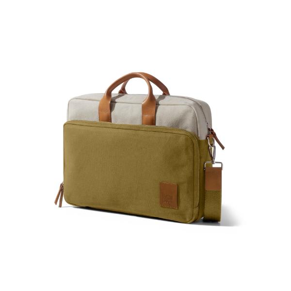 Handcrafted from 100% pure cotton canvasDual-way zippered main compartment features an ergonomic storage systemPadded laptop compartment with elastic closure fits laptop of up to 14.5’’ (measured horizontally) or a 16’’ MacBook (measured diagonally)Elasticated deep slip pockets for smaller work essentials like A6 notebook, power banks, cables and moreFront zippered pocket that features two spacious deep slip pockets, a leather keyring and three pairs of elasticated loops for quick-access essentialsConcealed zippered pocket on the back for additional storage of tech accessories or important documentsSturdy rolled-edge handles and adjustable shoulder strap for effortless two-way carryLuggage sleeve on the back for easy carry on wheeled luggage