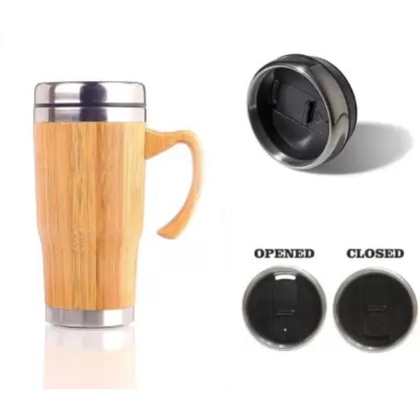 The BamCo | Bamboo coffee mug with handle perfect for hot and cold drinks like tea, juices, etc. Vacuum-insulated BPA-free mugs keep your drink cold for up to 4 hours and hot for up to 2 hours Inner body of the mug is made of 304-grade stainless steel which makes it plastic-free and keeps your drink away from toxic microplastic. Our insulated Mug Excellent design is perfect when you take your hot/cold beverage out on the road. Our eco-friendly bamboo mug solves your morning problem. It is designed to provide you pleasant drinking experience. It is suitable for car cup holders. The lid of the mug makes sure that the drink does not splash out while driving or walking. Do not tilt the mug upside down as it may leak your beverage.